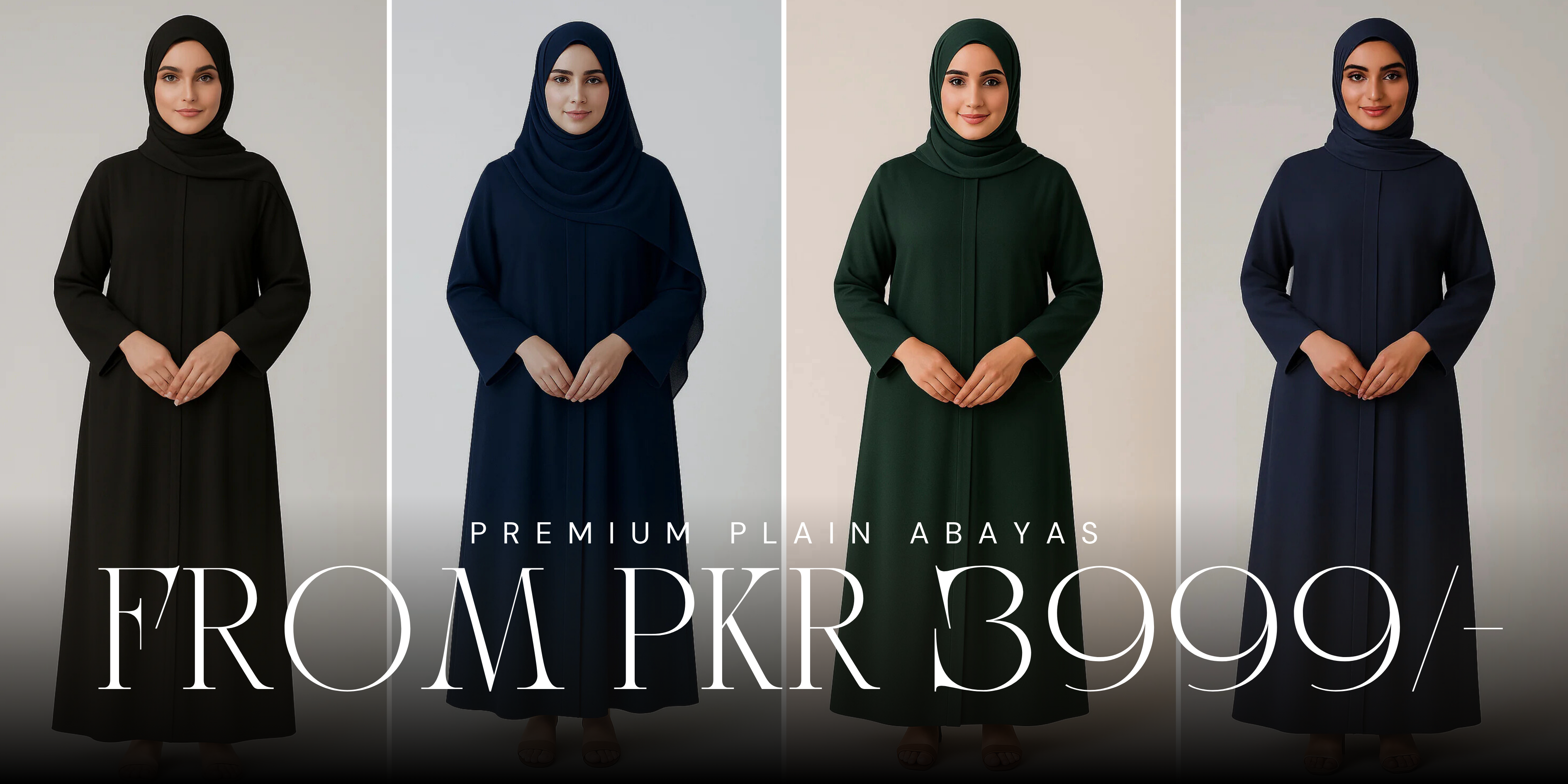 from Plain Abayas to Double Abayas or Hijabs, All modest needs at one place!
