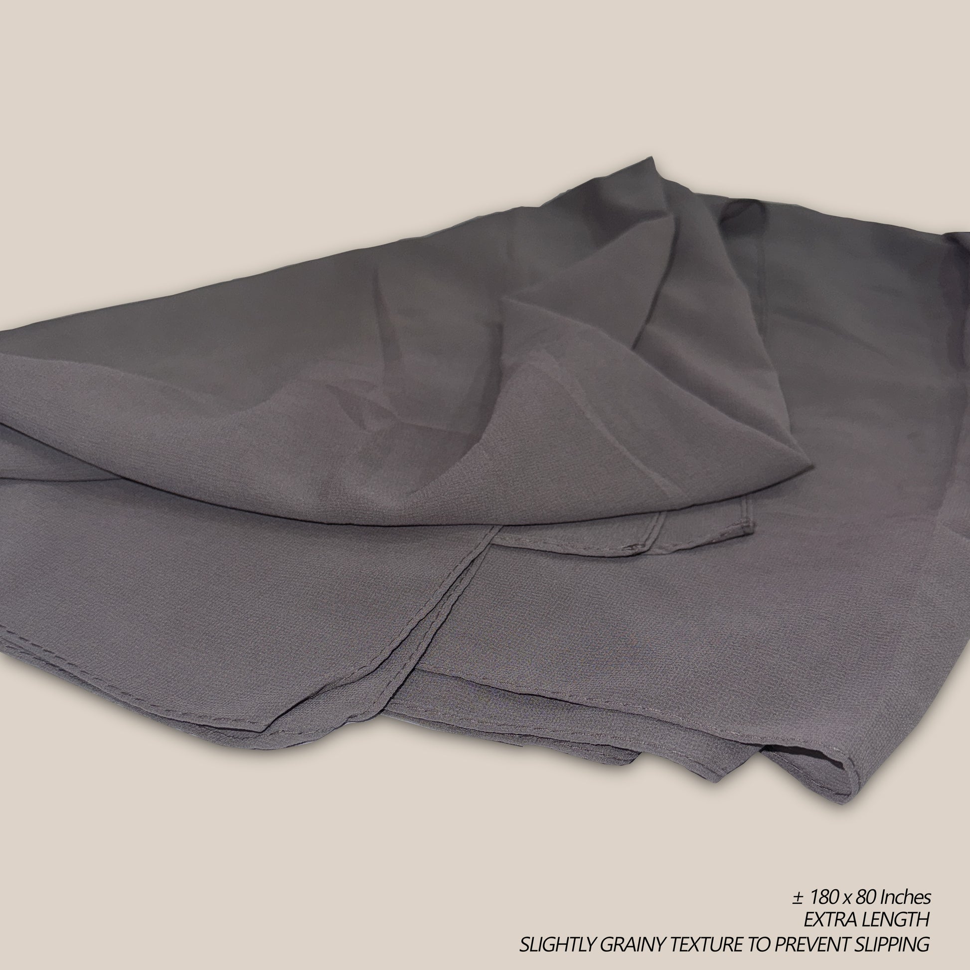 Premium Georgette Hijabs made from fine-quality fabric with extra length and slightly grainy texture to prevent slipping.