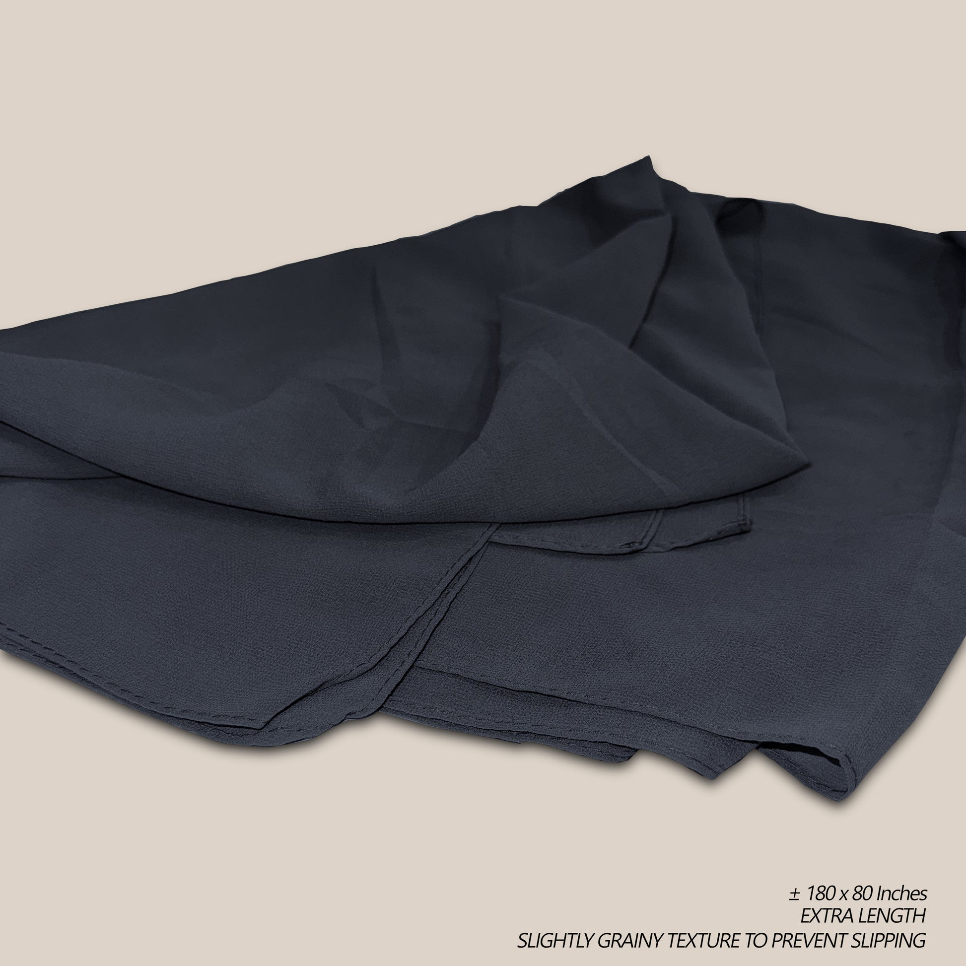 Premium Georgette Hijabs made from fine-quality fabric with extra length and slightly grainy texture to prevent slipping.