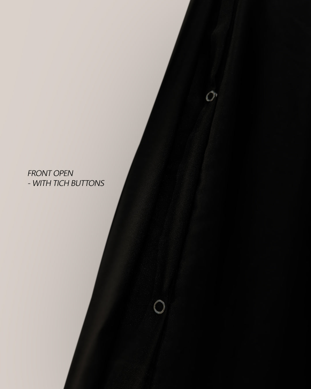 The elegant and minimalistic front-open Nida fabric abaya with buttons is made for everyday wear, making it the ultimate choice for your daily routine